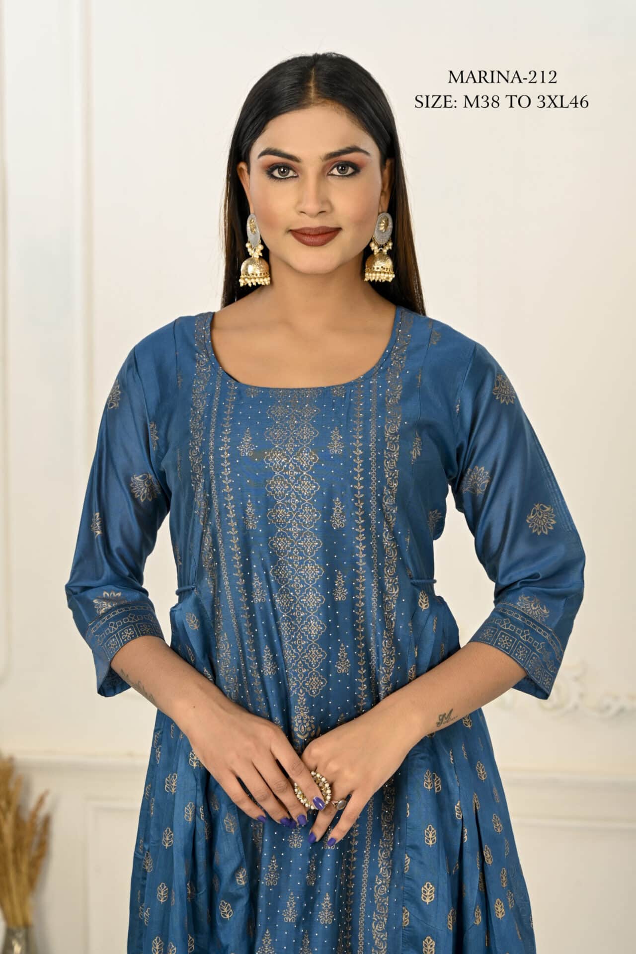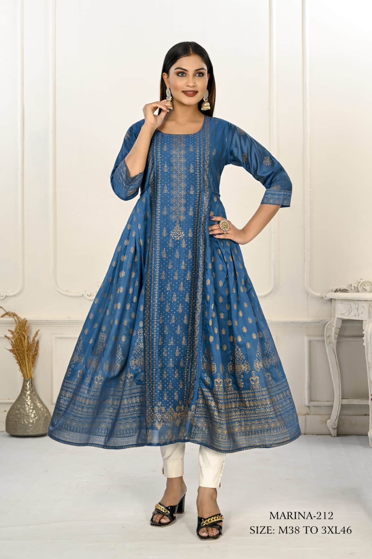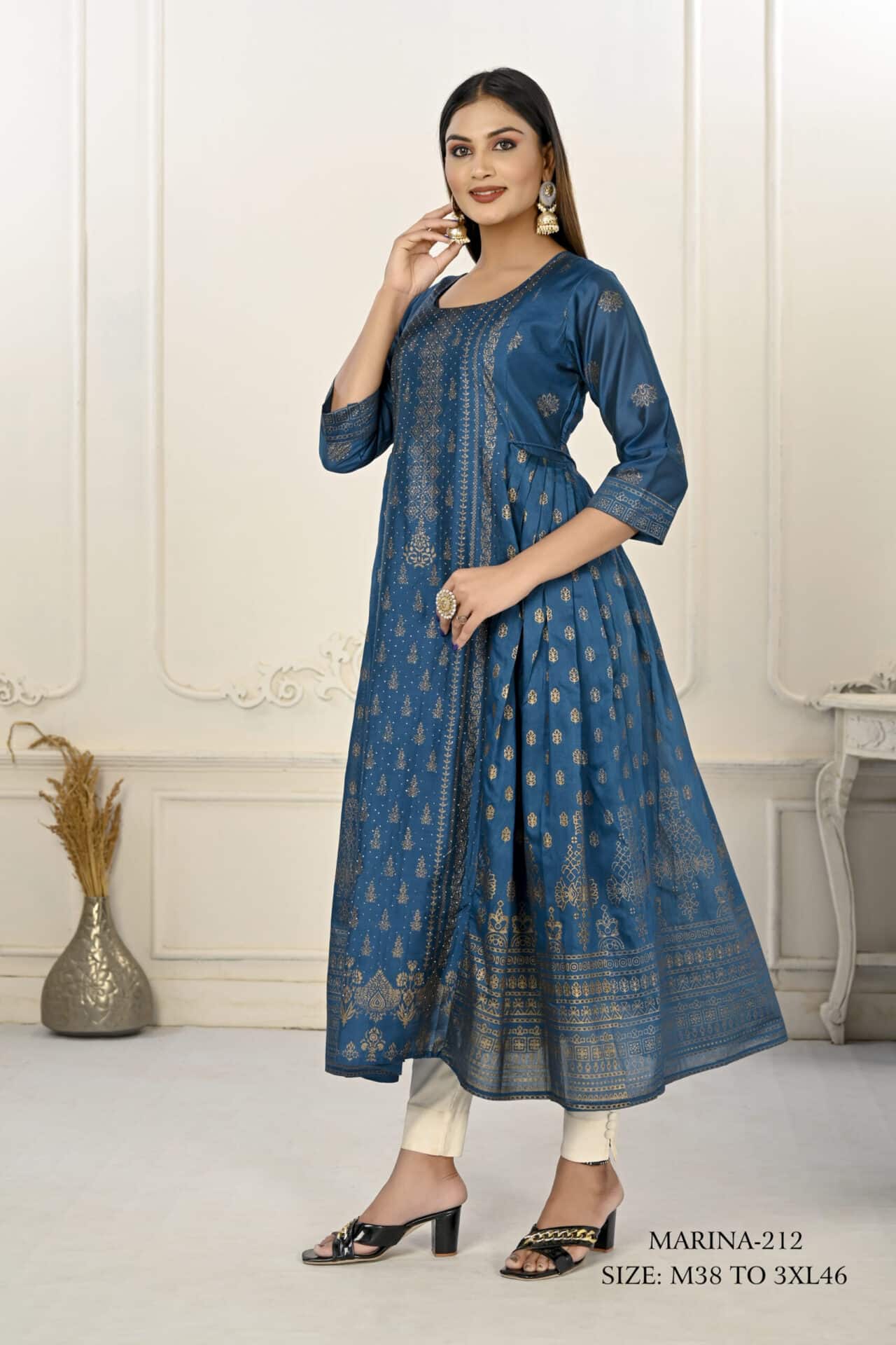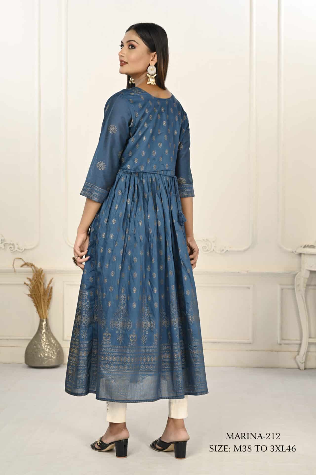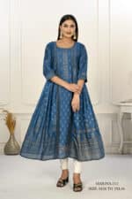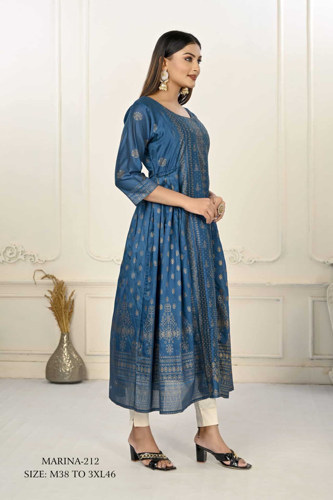 This blue cotton kurti features intricate handprint embroidery and is sure to turn heads! Show off your fashion sense and make a statement.