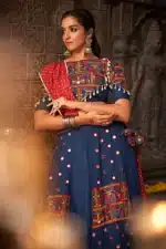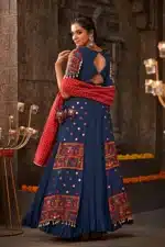 This handcrafted Blue Thread Embroidered Chaniya Choli is a perfect choice for celebrating Indian Navratri. Expertly crafted with traditional embroidery techniques, it features a unique design that celebrates the cultural significance of Navratri.