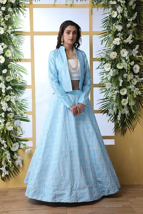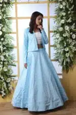 Classic Charm: Koti Style Lehenga Choli Collection in Sky Blue