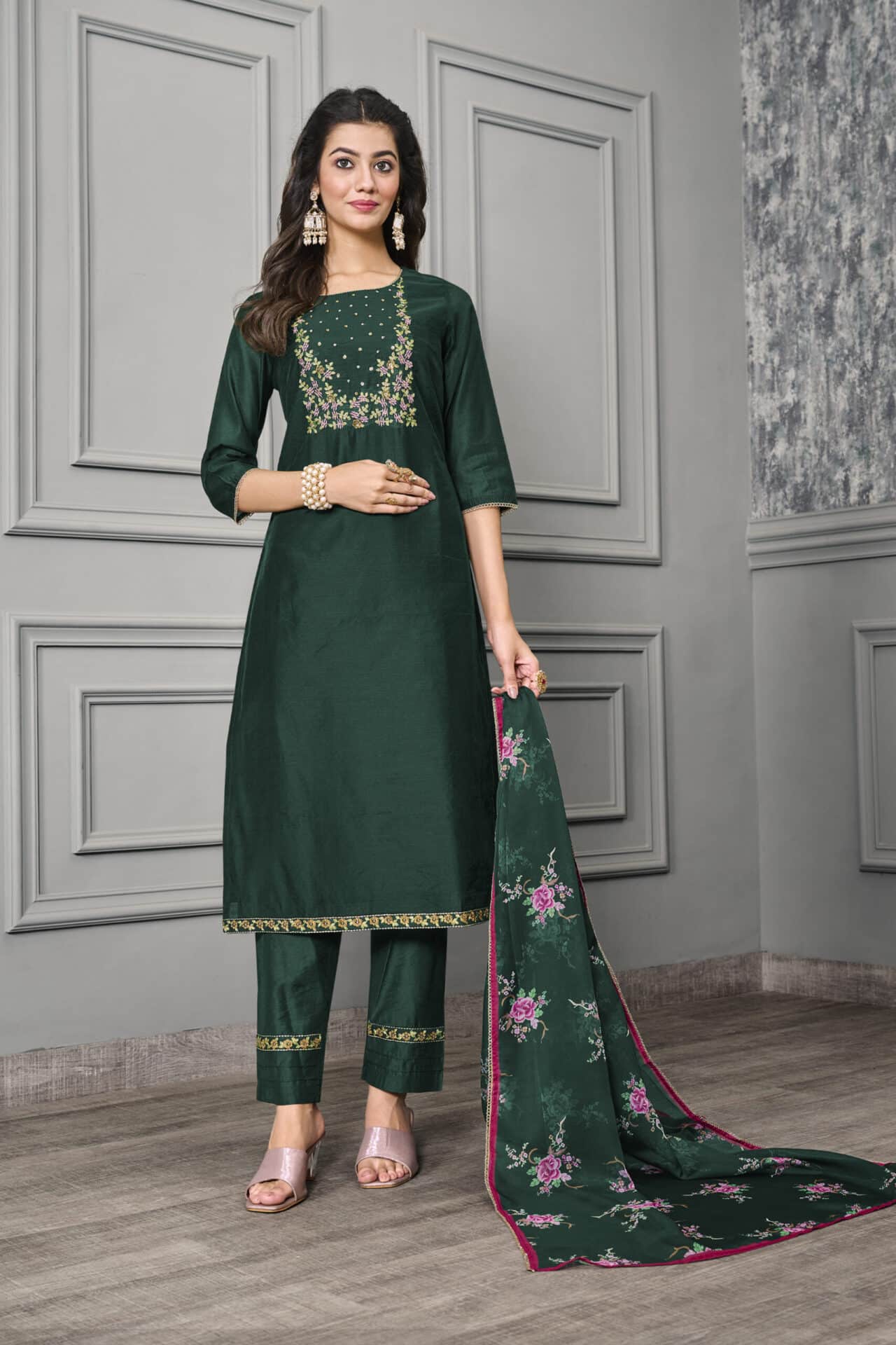 Cotton Silk With Organza Embroidery Green Salwar Kameez