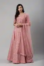 Peach Net Fabric Full Embroidered Stitched Anarkali Gown