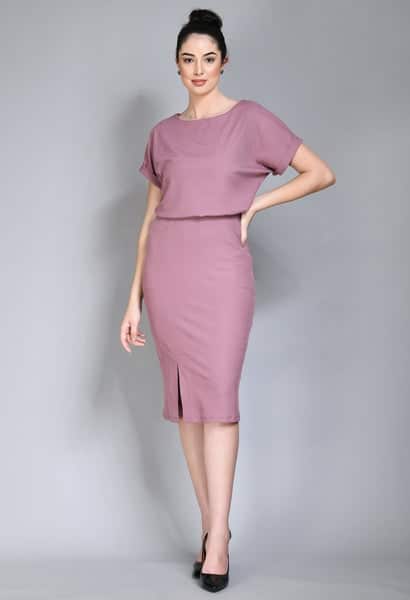 Exude Enigma Ribbed Blouson Dress (Dusty Pink)