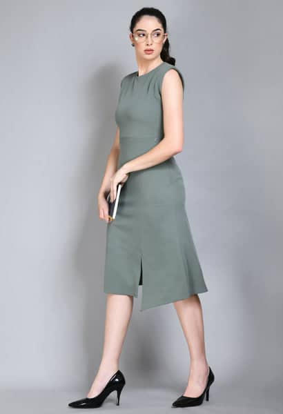 Exude Finesse Asymmetrical A-line Dress (Pista Green)