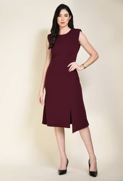 Exude Finesse Asymmetrical A-line Dress (Wine)