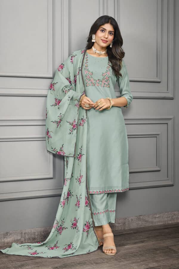 - Work: Salwar Kameez Embroidered & Digital Print Dupatta And Trim Embroidery