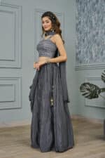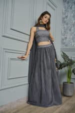 This Grey Art Silk Heavy Embroidery Lehenga is perfect for a formal event. Crafted from shimmer georgette fabric and featuring heavy embroidery and sequins work, it will make heads turn. With a mauve color and long robe with latkan, it is sure to make you stand out in any crowd.