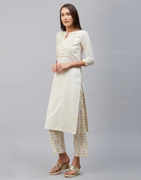 Off White Coloured Cotton Flex Printed Kurti With Palazzo
