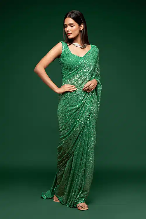 Indulge in the beauty of our New Exclusive Party Wear Georgette Sequence Work Saree Collection and let the luxurious fabric and exquisite detailing speak volumes about your style. Make every occasion memorable with this timeless and glamorous ensemble.