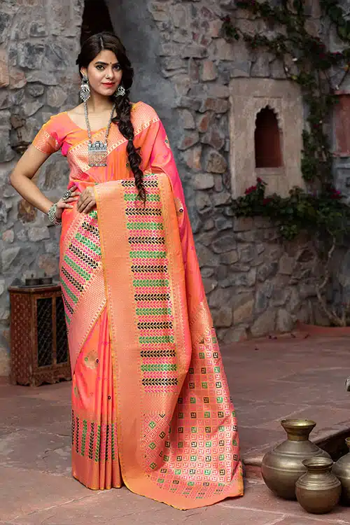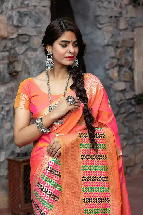 Perfect for Any Special Occasion: This Pink Banarasi Weaving Silk Exclusive Saree is designed to make you stand out at any special occasion. Whether it’s a wedding, party, or festive celebration, this saree is a statement piece that radiates elegance.