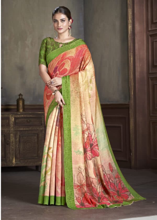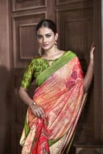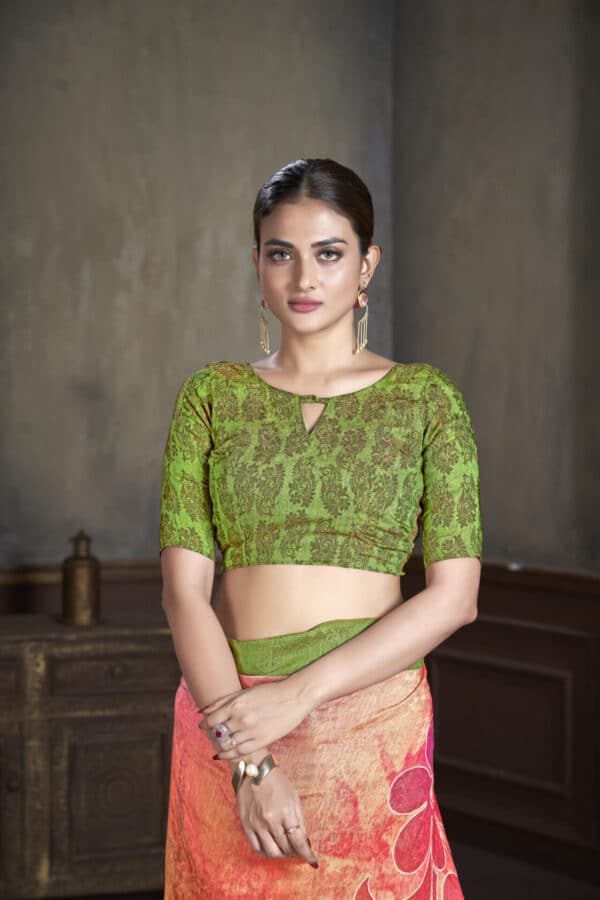 Premium Jacquard Zari Digital Printed Blouse With Saree