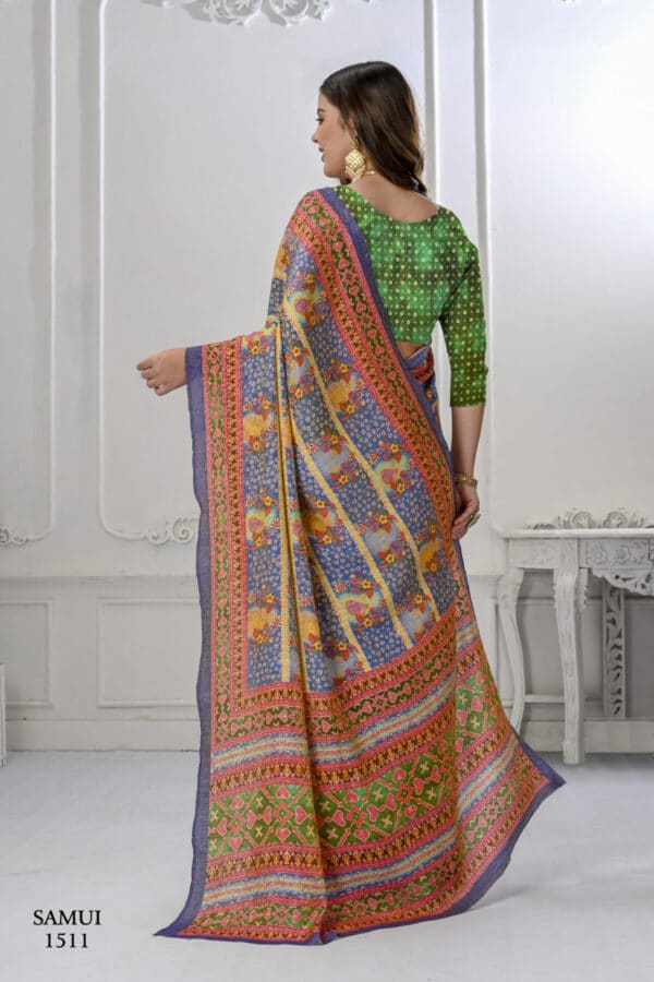Premium Natural Silk High Definition Jacquard Zari Digital Printed Blouse With Saree – Blue