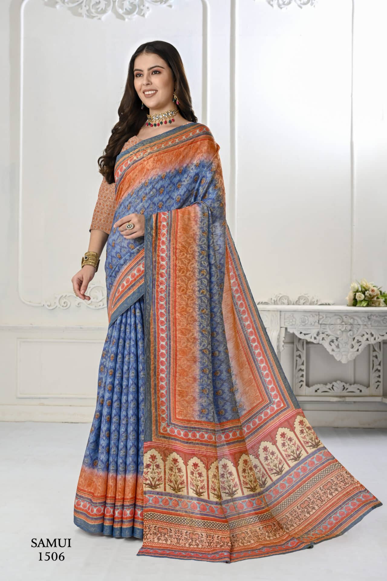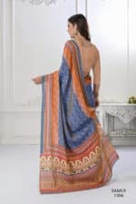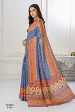 Premium Natural Silk High Definition Jacquard Zari Digital Printed Blouse With Saree – Blue