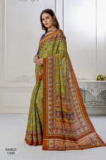 Premium Natural Silk High Definition Jacquard Zari Digital Printed Blouse With Saree – Mustard