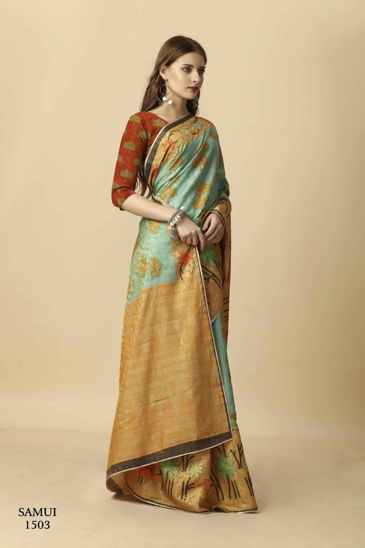 Premium Natural Silk High Definition Jacquard Zari Digital Printed Sarees