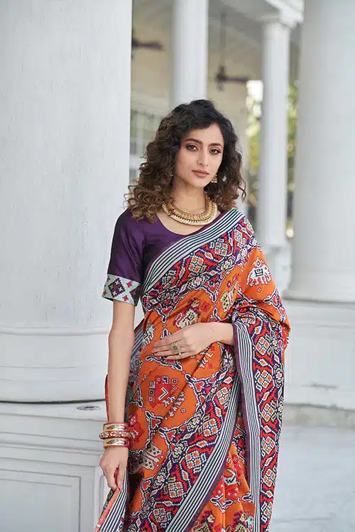 Luxuriously Soft Feel: Crafted with a focus on quality, these sarees provide a luxuriously soft feel against the skin. The combination of Zari work and Patola Weaving Silk ensures that each saree is not just a piece of clothing but a work of wearable art.