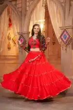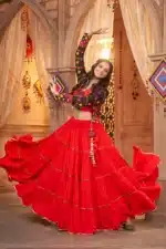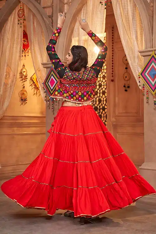 Red Contrast with Black Koti Style Latest Designer Chaniya Choli for Navratri