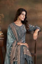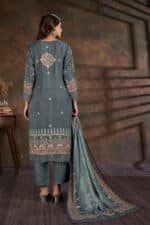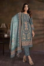 Teal Blue Digital Print Embroidered Work Salwar Kameez