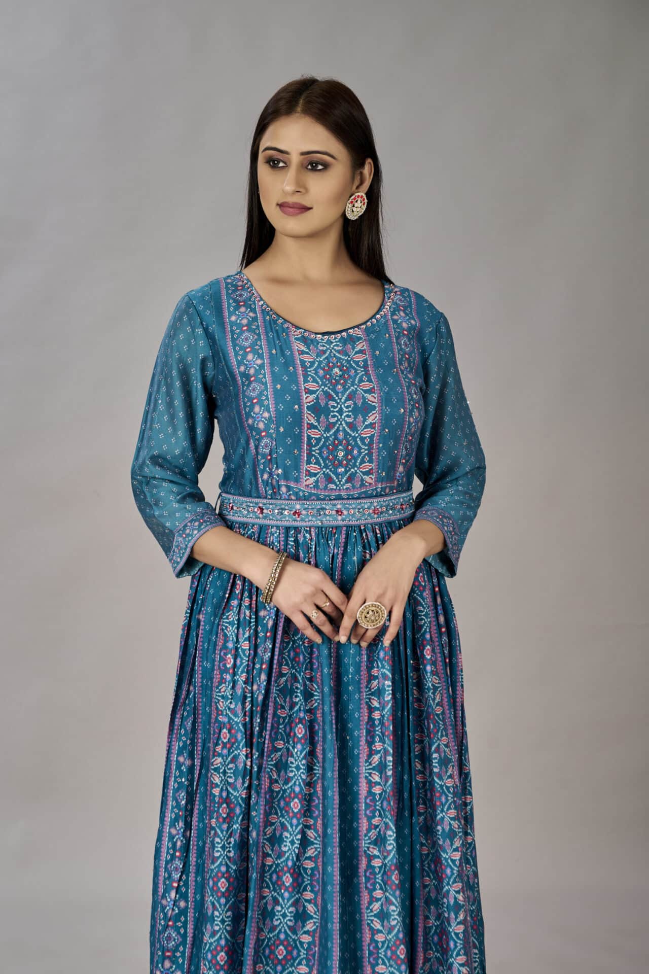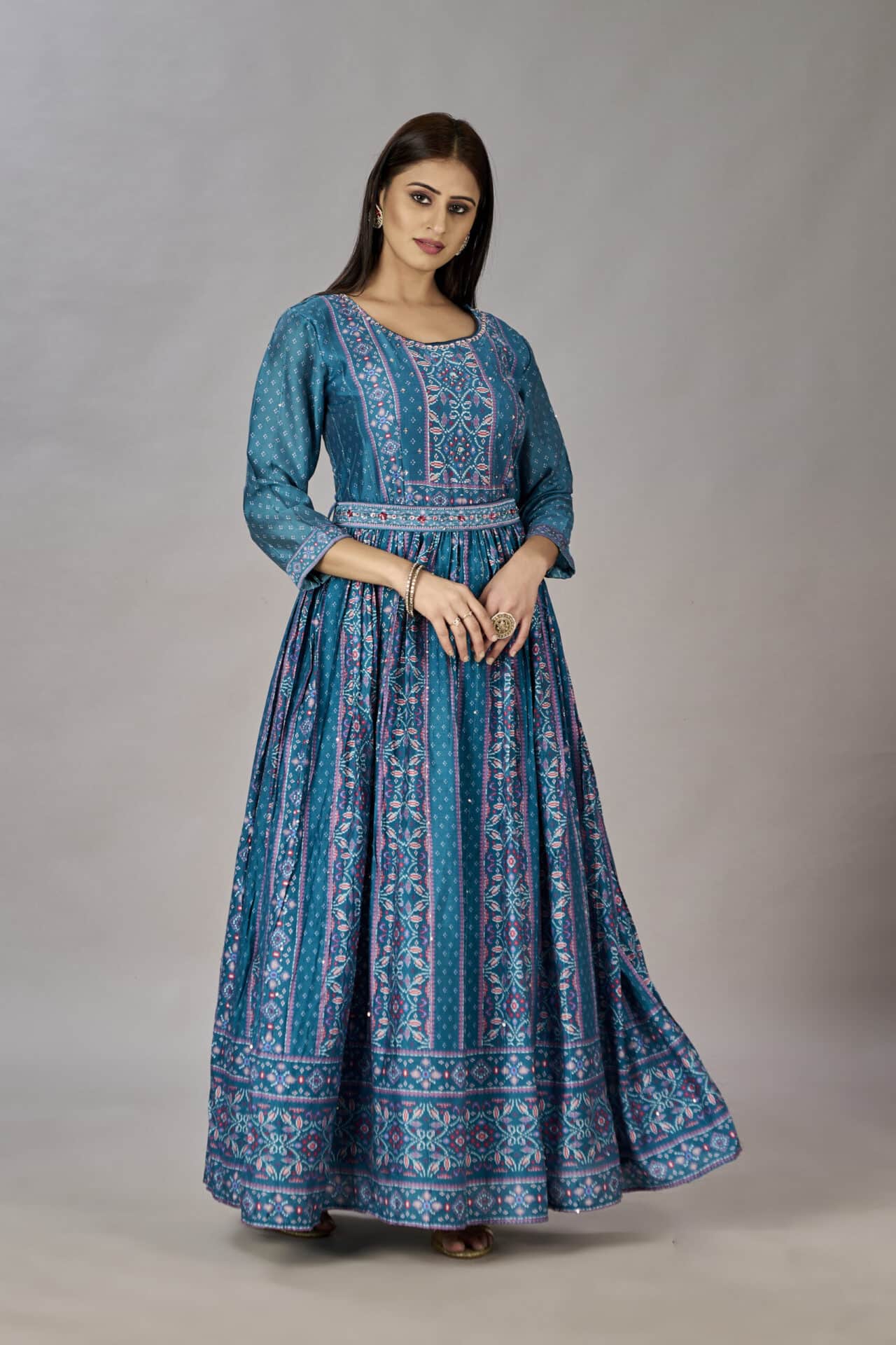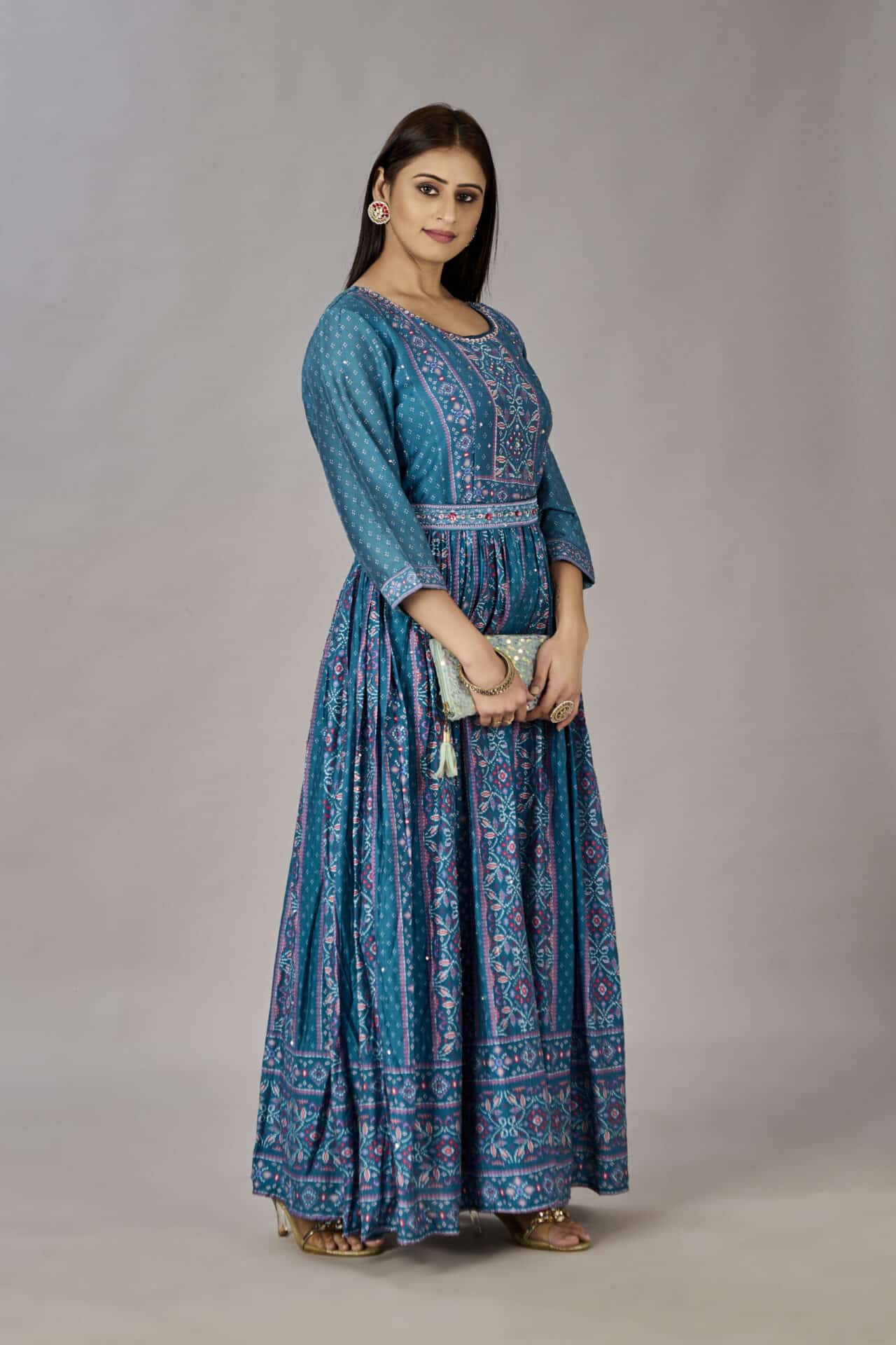 - Work: Heavy Gown Digital Print Embroidered & Sequins