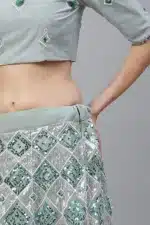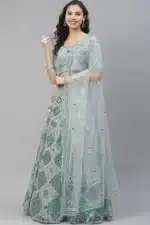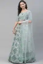 This lovely designer Lehenga Choli is crafted from lush turquoise silk and features intricate embroidery. Gypsy-inspired beadwork and shimmering sequins add a touch of romance to the design. Perfect for weddings and other special occasions, this captivating ensemble is sure to make you the center of attention.ย Turquoise Blue Designer Lehenga Choli for Women Wear.