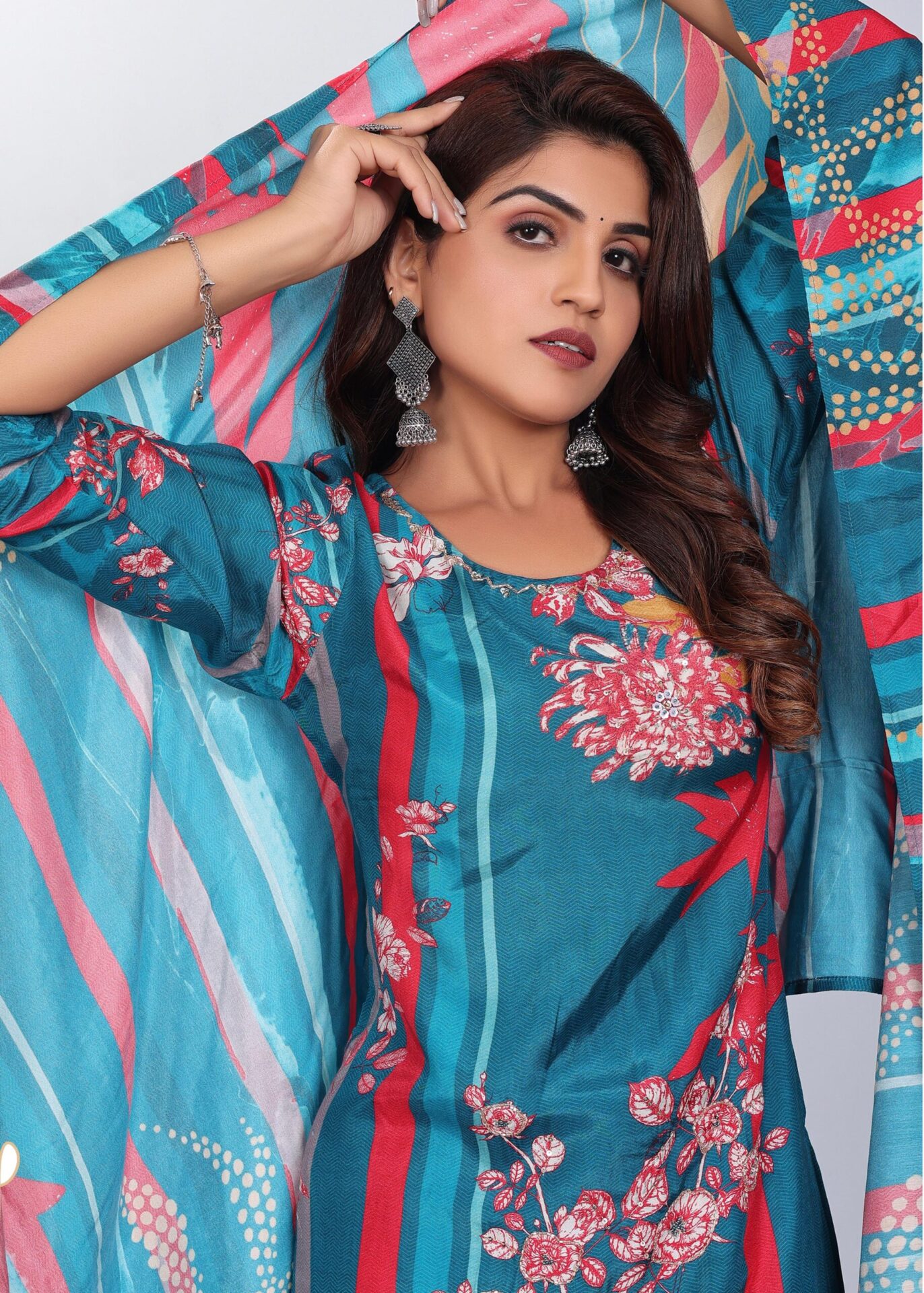 Women Muslin Digital Print Handwork Embroidery Sequence Work Salwar Kameez