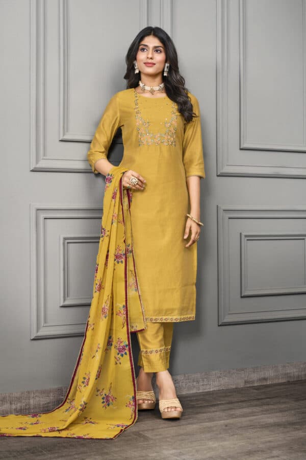• Work: Salwar Kameez Embroidered & Digital Print Dupatta And Trim Embroidery